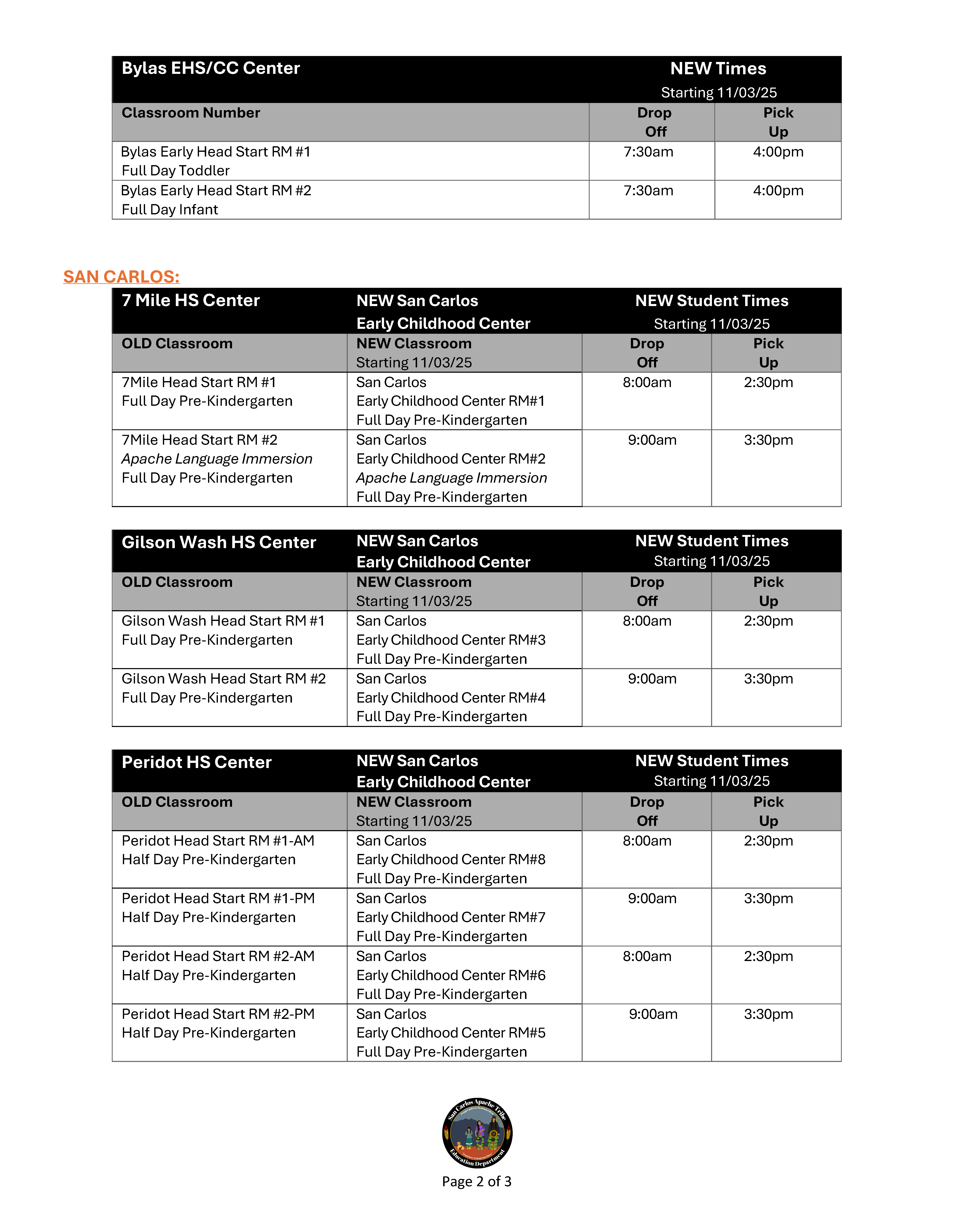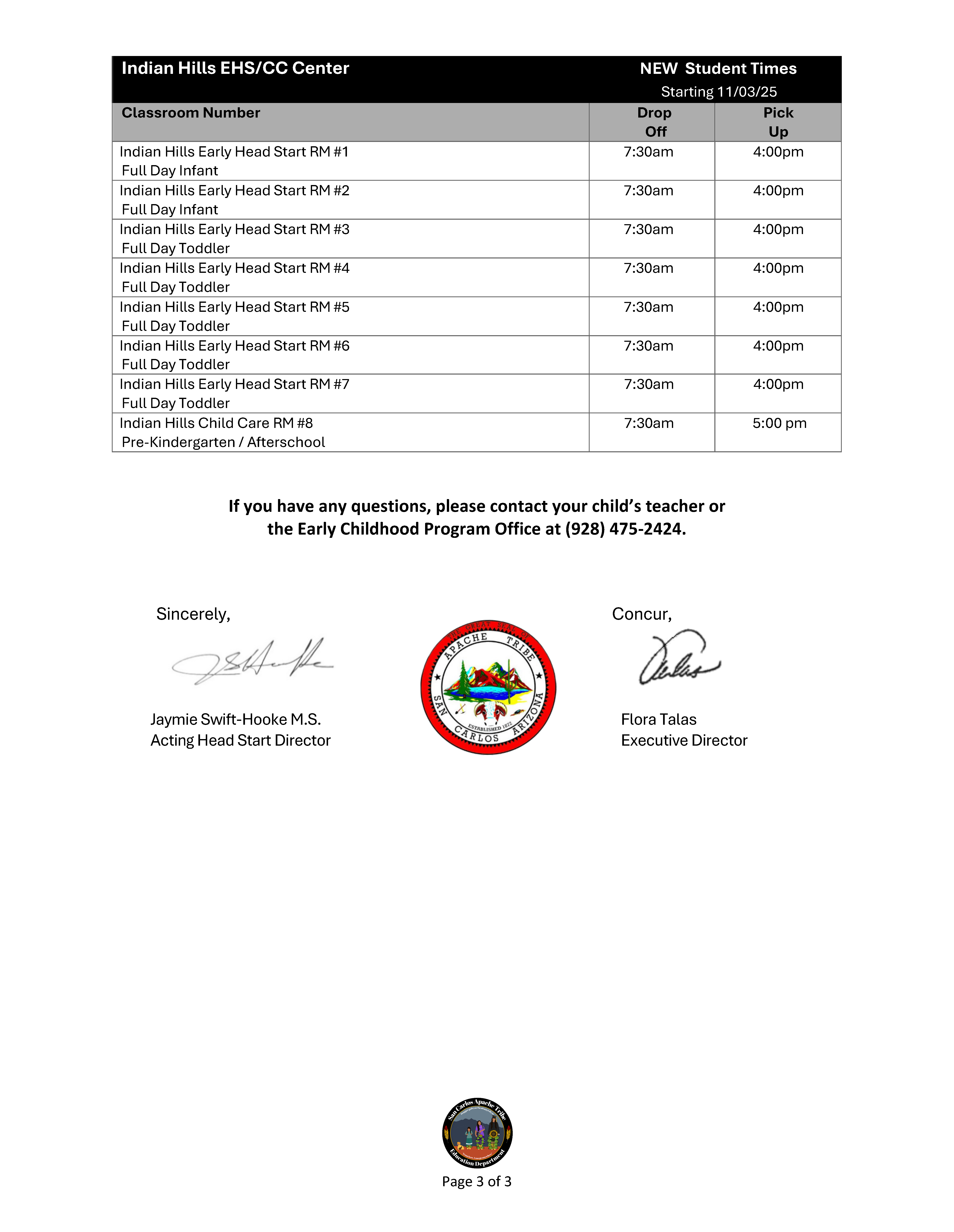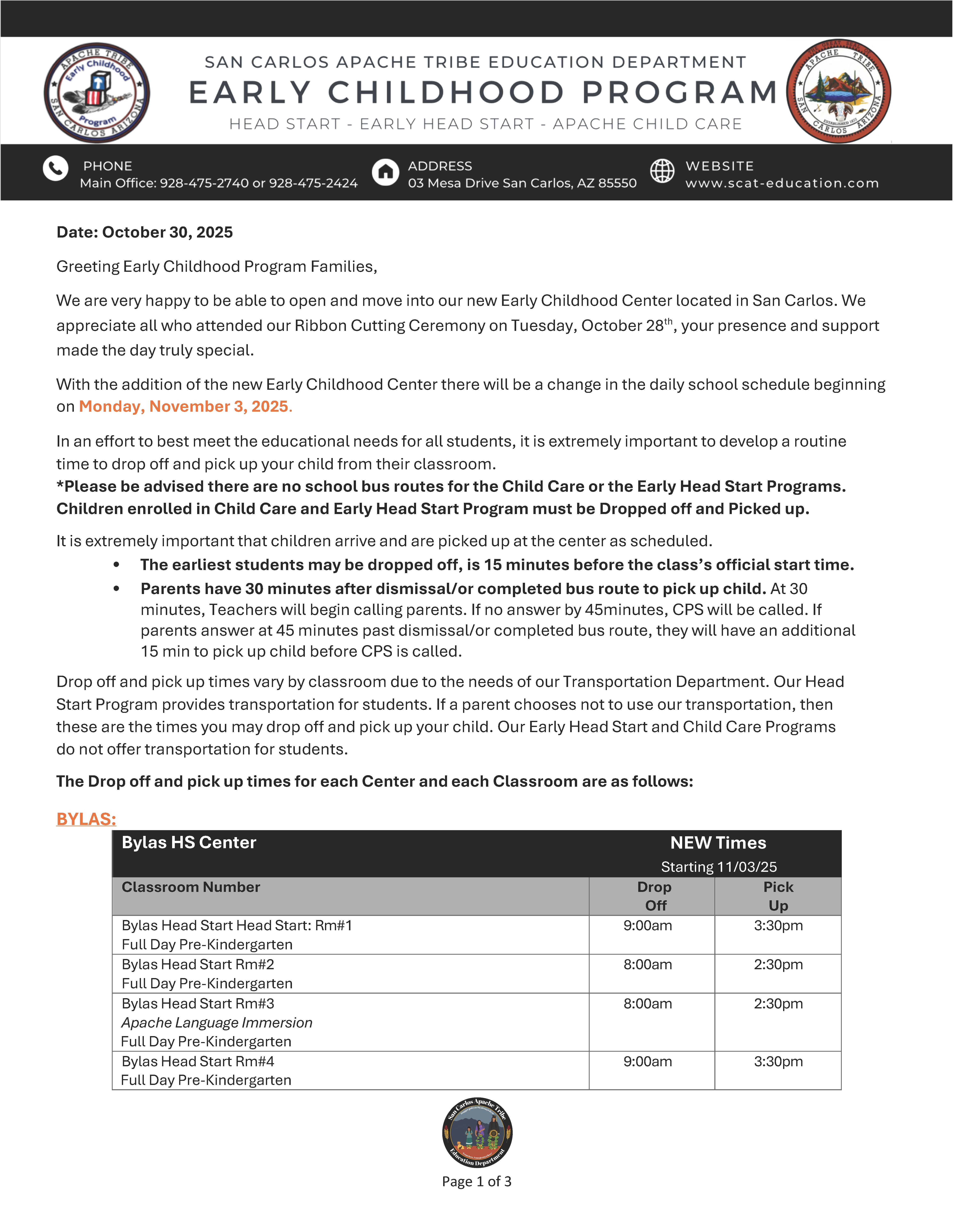 The Head Start program services every eligible child of the San Carlos Apache Tribe, including programming aimed at the unique needs of vulnerable children and families. It is the objective of the program that every child who attends reaps the lifelong benefits of early childhood education.